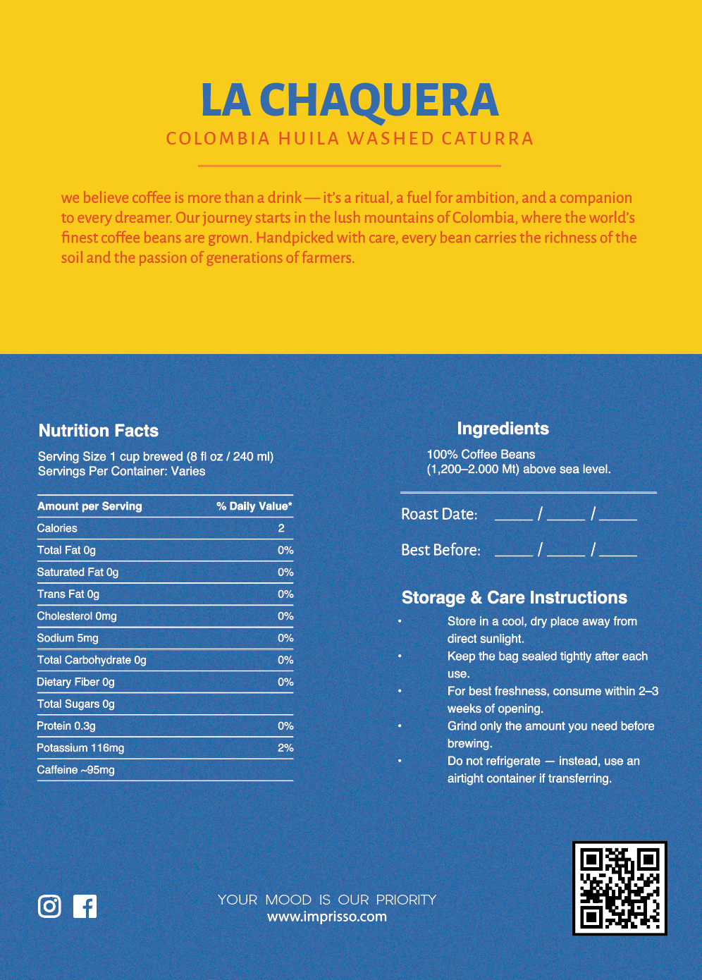 La Chaquera, produced by Qima Coffee in the highlands of Huila at 1,800 MASL, represents Colombia’s elegance in every sip.