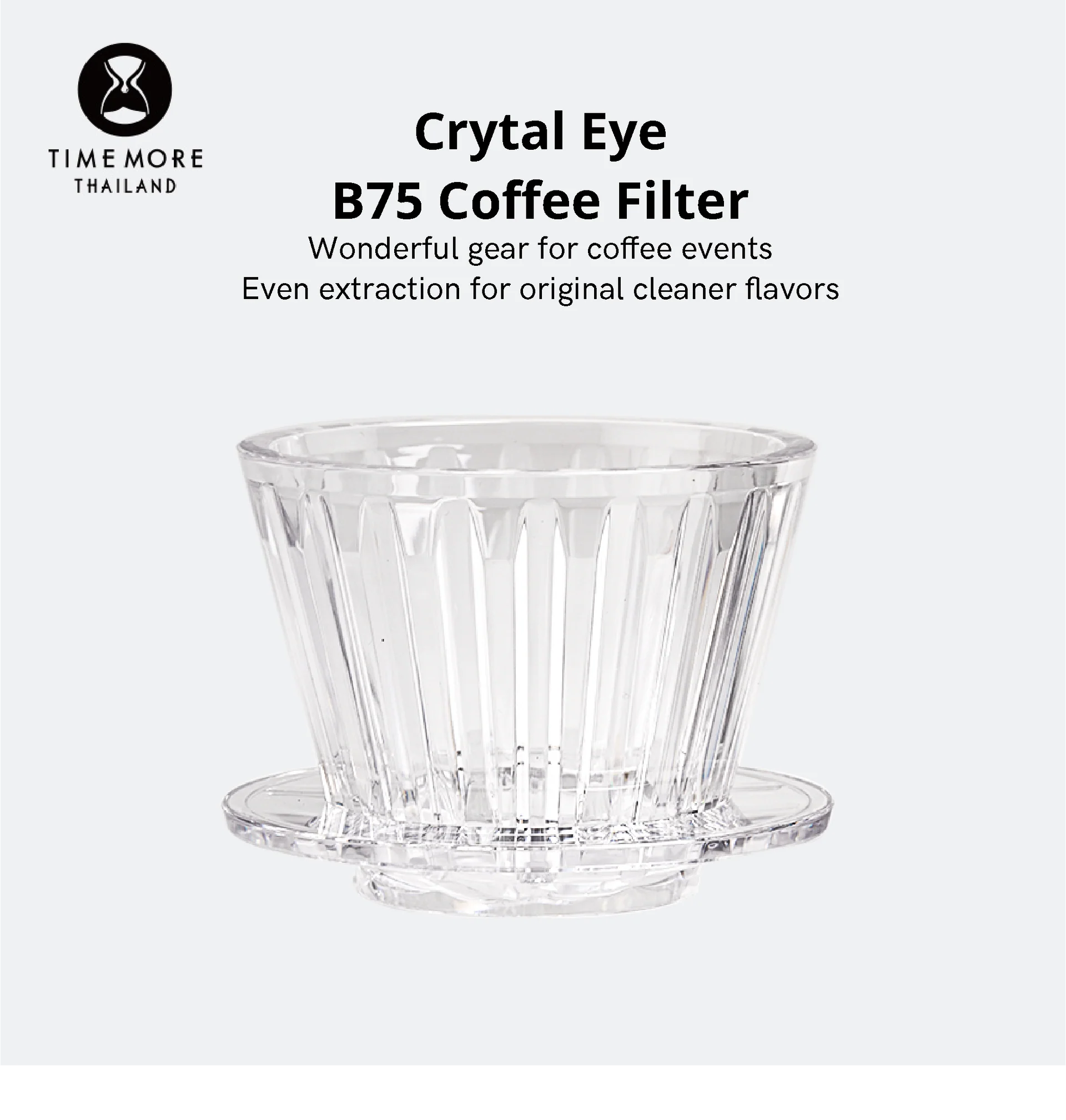 The TIMEMORE Crystal Eye B75 is a flat-bottom dripper engineered for sweet, clean cups with a stable, easy drawdown. Its Crystal Eye geometry and internal ribs promote even bed depth and reduce channeling—perfect for beginners and pros who want repeatable pour-overs with less fuss. Uses B75 flat filters (Kalita-style form factor) and fits most servers and mugs.